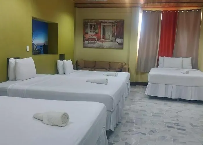 Located within a 10-minute drive of the Salvadoran national Monumento al Divino Salvador del Mundo, the 4-star Suites Las Palmas, Hotel & Apartments. San Salvador features Wi-Fi throughout the property and a free private car park on site. An à la carte restaurant is available in this San Salvador hotel that boasts a charming location, about 10 minutes' drive from such entertainment venues as Casino Colonial.